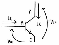 バイポーラトランジスタが能動領域で直流増幅しているときの動作の説明として、適切なものはどれか。 ここで、ベース(B)からエミッタ(E)に流れ酢電流をIB、コレクタ(C)からエミッタに流れる電流をIC、ベース−エミッタ間の電圧をVBE、コレクタ−エミッタ間の電圧をVCEとする。