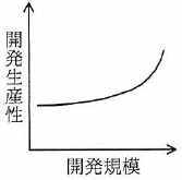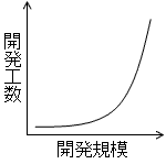 【解説】 開発工数MMを求める式 開発工数 = 3.0×(開発規模)1.12 から、開発規模と開発工数の関係を表すグラフは になります。 したがって、開発規模と開発生産性の関係を表すグラフは (エ)になります。
