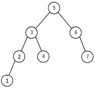 問題の2分探索木に1の要素を追加すると、1は2分探索木の中で最小の要素の2よりも小さいので、2の左の子になる。