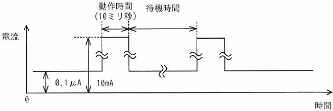 センサーノードの動作時間は10ミリ秒で、その間は平均して10mAの電流が流れる。