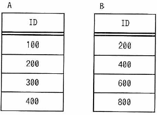 表Aと表Bkara,どちらか一方にだけ含まれるIDを得るSQL文のaに入れる字句はどれか。