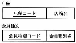 “会員”表には会員を特定するための主キーとなる「会員番号」、“会員種別”表を参照するための「会員種別コード」、会員番号を店舗ごとに付与するので“店舗”表を参照するための「店舗コード」が必要なので、これを満たすのは