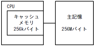 図に示す構成で、表に示すようにキャッシュメモリと主記憶のアクセス時間だけが異なり、他の条件が同じ2種類のCPU XとYがある。