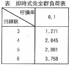 になり、即時式完全群負荷表でこれを満たす回線数は4(イ)になる。