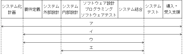 | ウ | 要件定義フェーズからシステム結合フェーズまで |