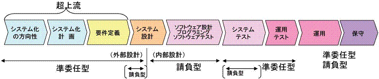 経済産業省の“情報システム・モデル取引・契約書”には、情報システムの委託を行う際のユーザーとベンダー間で推奨する契約は下図のようになっています。