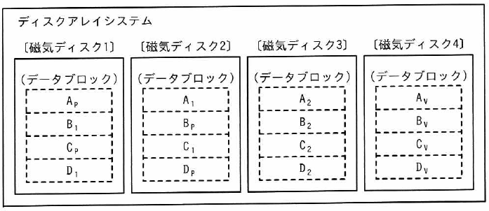 ここで、パリティの計算方法では“データブロックX”の内容を“X”で示し、