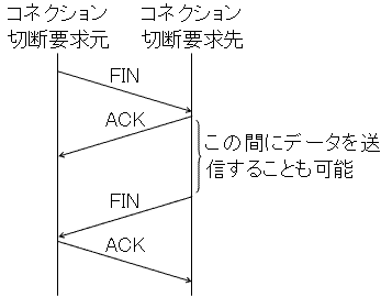 | FIN_WAIT | コネクション切断要求元がFINを送信後の状態。 |